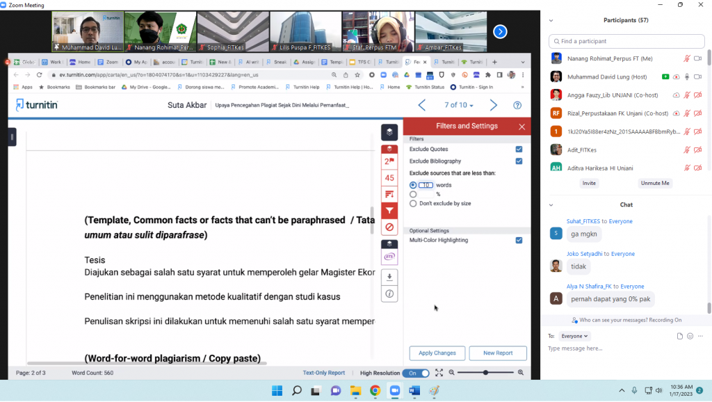 Semoga kegiatan ini bermanfaat bagi Bapak/Ibu Pustakawan dan Dosen dalam mengoptimalkan pemanfaatan Turnitin. Dalam closing statement narasumber mengingatkan bahawa;