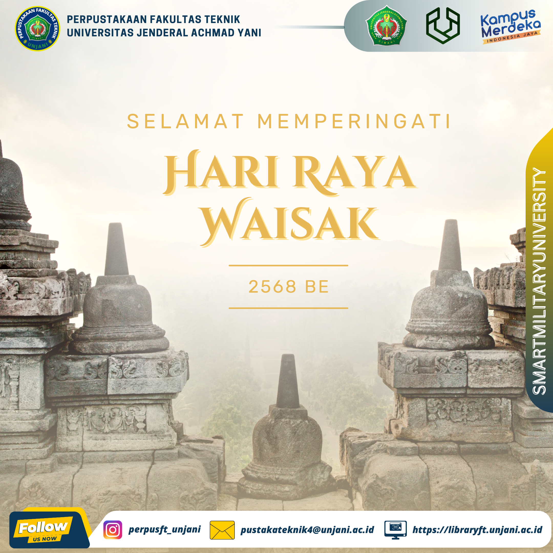 Perpustakaan Fakultas Teknik UNJANI mengucapkan selamat memperingati Hari Waisak 2568 BE kepada semua umat Buddha yang merayakannya. Mari kita memperdalam pemahaman tentang cinta kasih, kedamaian, dan kesatuan, nilai-nilai yang diwarisi oleh semua agama, termasuk ajaran Buddha.