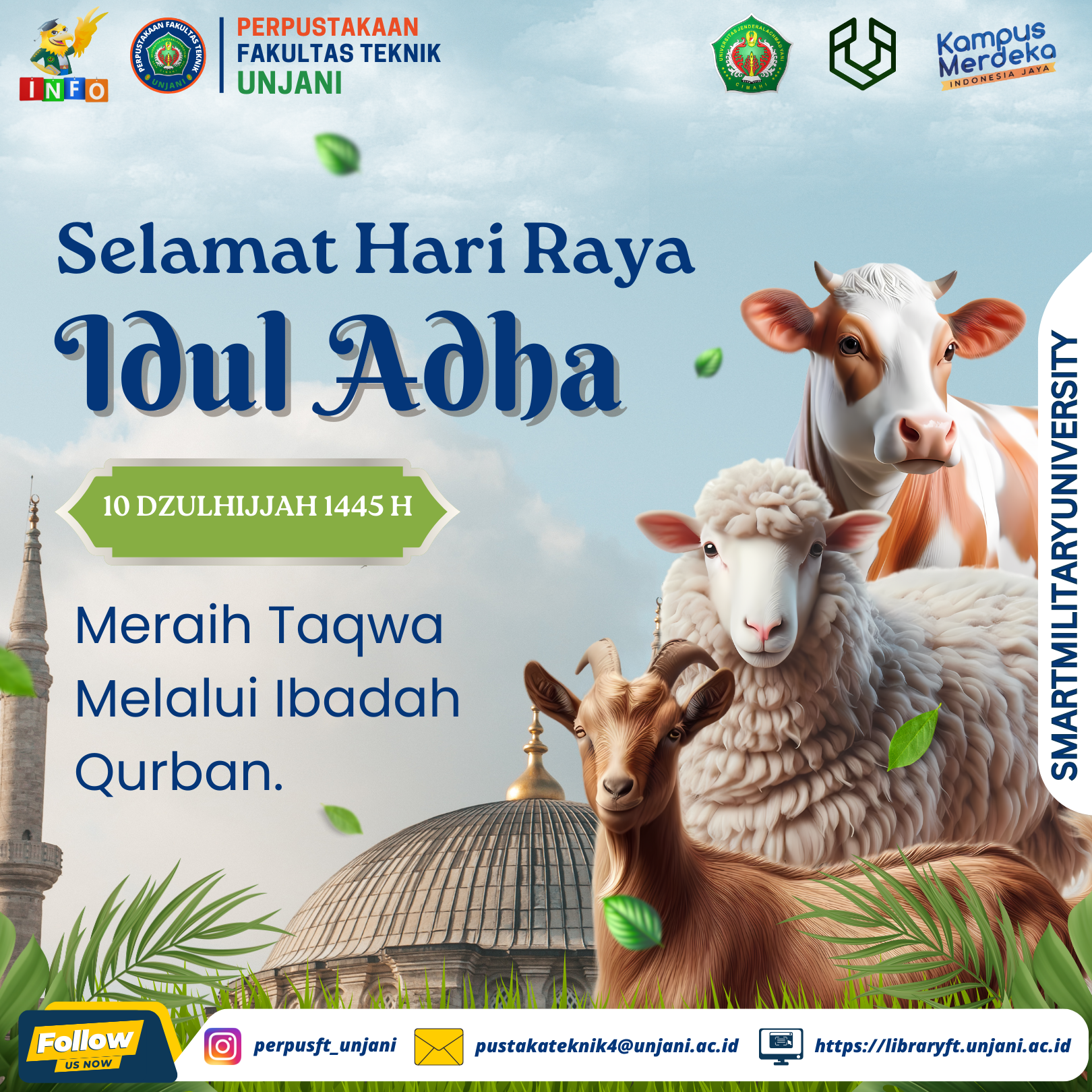 Dalam semangat Hari Raya Idul Adha 1445 H/ 2024 M, Perpustakaan Fakultas Teknik UNJANI mengucapkan selamat Hari Raya Idul Adha kepada seluruh civitas akademika Universitas Jenderal Achmad Yani.